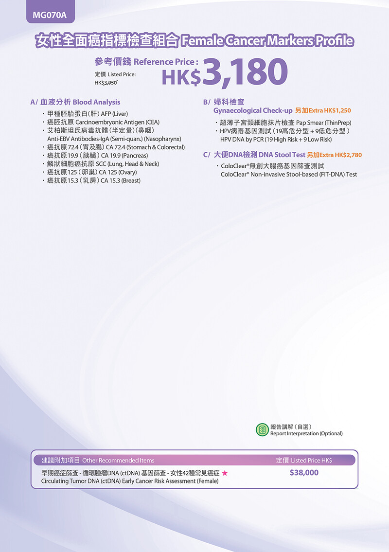 - 如有需要,客戶可另付醫生費約見醫生作深入解釋及跟進。
