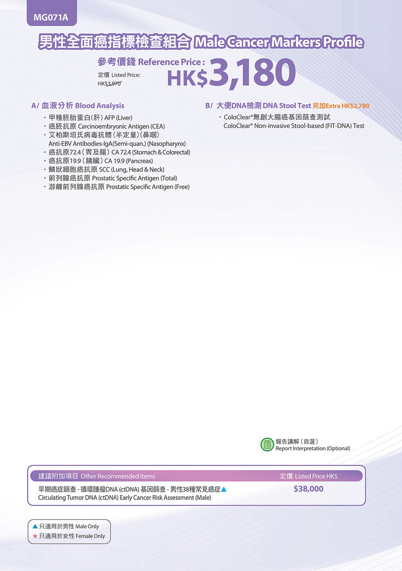 - 如有需要,客戶可另付醫生費約見醫生作深入解釋及跟進。