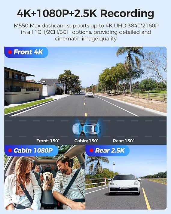 3. Wide-angle lens: Enjoy a broader view of the road with the dashcam's wide-angle lens.
