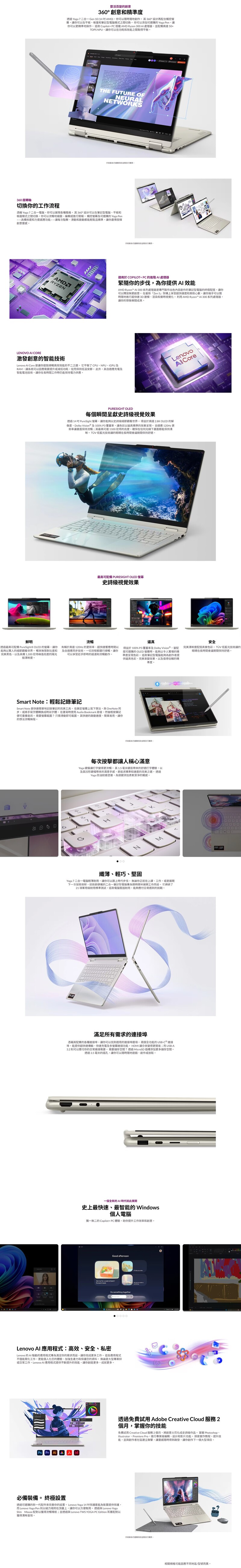 Lenovo Yoga 7 2-in-1 14AKP10 14" 2.8K Touch (Ryzen AI 7 350/32GB+1TB SSD) 83JR005CHH AI 手提電腦 筆記型電腦