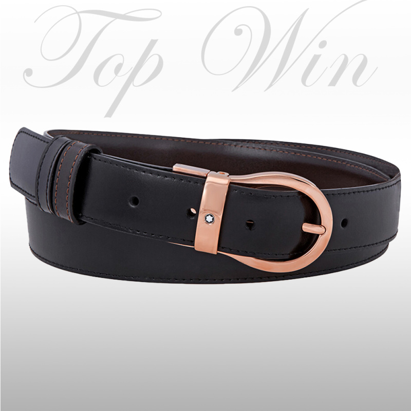 全新萬寶龍經典黑/棕雙面皮帶,玫瑰金色搭扣,可自由調節,配套包裝全。