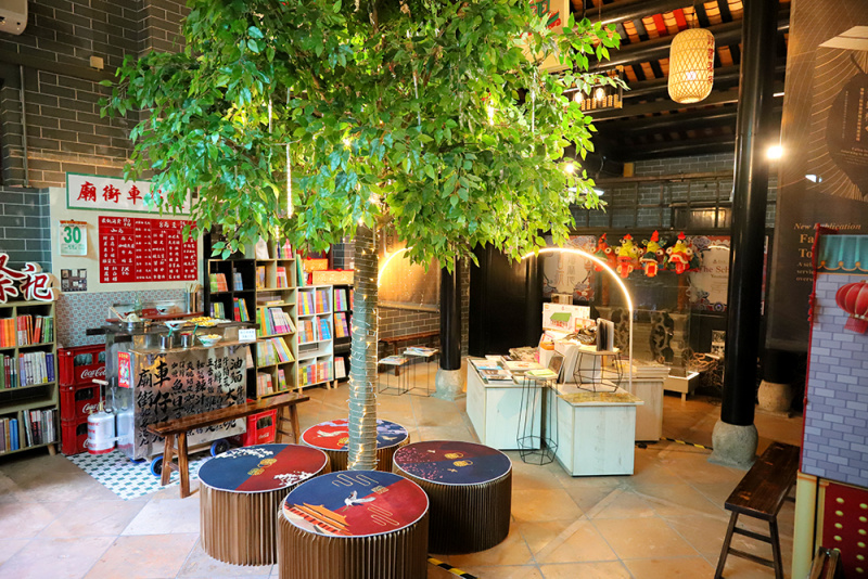 法定古蹟的油麻地天后古廟內「油麻地書院」被改成自助書店,售賣有關香港、宗教等書籍,及文創產品,還設計了多個打卡位