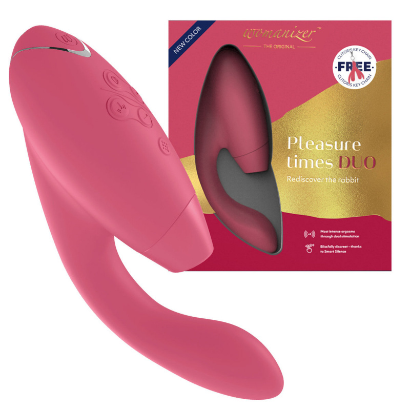 - DUO是兩全其美的。 DUO擁有Womanizer的“愉悅空氣技術”,可通過強大的交替氣壓波刺激陰蒂,並通過強烈的內部振動按摩G點。