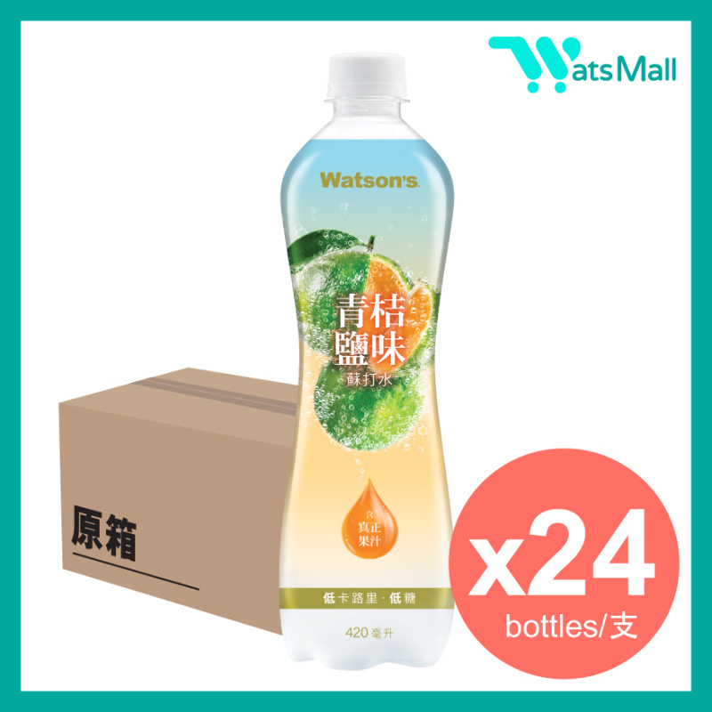 . [原箱24樽] 屈臣氏 青桔鹽味蘇打水 420ml 膠樽裝 -