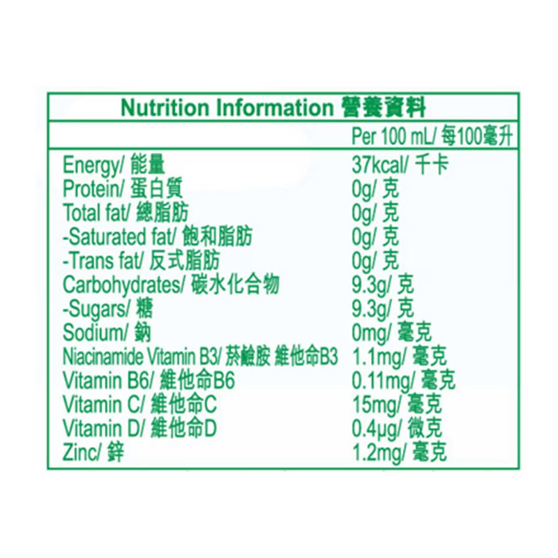 含多種維他命包括:維他命C、B3、B6、D及鋅